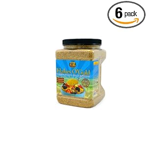 Premium Gold Flakes O'Gold Pre-Ground Golden Flax Seed, 40 Ounce Jars ( Pack of 6)